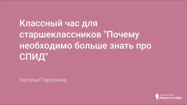 1 декабря в школах традиционно проводят мероприятия, посвященные профилактике СПИДа. «Чума» Xxвека — СПИД, представляет большую опасность, как для одного человека, так и для всего общества в целом. Классный час, посвященный этой проблеме, позволяет учащимся понять что из себя представляет СПИД, как им можно заразиться. Кроме того, после классного часа студенты должны понять, что к больным СПИДом людям нужно относиться толерантно.