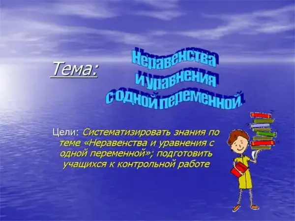 Цели урока: систематизировать знания учащихся по темам "Неравенства с одной переменной", "Уравнения с одной переменной"; подготовить учащихся к контрольной работе. Урок проводится в форме игры "Морской бой".