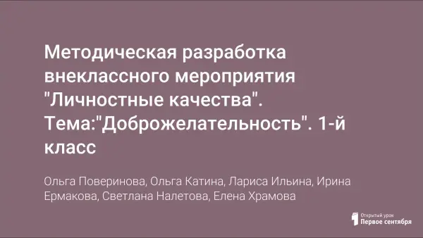 Мероприятие в 1-м классе направлено на формирование личностных УУД путем создания комфортной среды для каждого ученика; внедрения понятия доброжелательность»; осознания значимости доброжелательности как личностного качества, необходимого для успешного обучения; знакомство с моральными нормами, формирования умения соотносить с ними свои поступки и осуществлять на этой основе межличностные отношения; умения работать в группе, аргументировать свою точку зрения.
