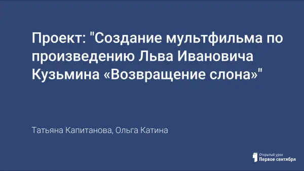 Цель проекта: популяризация творчества Льва Ивановича Кузьмина через создание мультфильма.