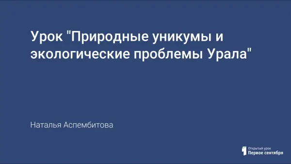 Урок-проект показывает природную уникальность Урала на примере природных объектов, раскрывает экологические проблемы региона, совершенствует умения учащихся самостоятельно искать способы их решения.