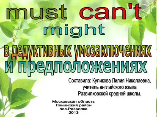 Цель урока: формирование навыка употребления в речи модальных глаголов; обобщение пройденного материала по теме.