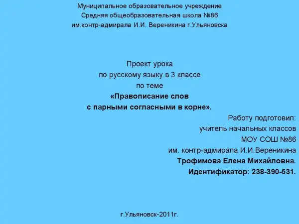 Урок закрепления знаний посвящен умению учащихся применять правила проверки парных согласных в корне слов на практике, используя алгоритм действий, памятки, опорные схемы. Младшие школьники учатся самостоятельно делать выводы по теме. На уроке закрепляются знания учащихся о связи слов в предложении, о признаках текста. Совершенствуется навык работы со словарем. Развиваются навыки самооценки и самоконтроля, взаимоконтроля в процессе выполнения заданий.