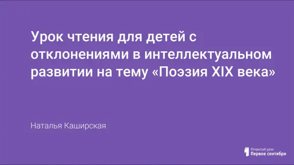 Урок чтения для учащихся с легкой умственной отсталостью коррекционной школы VIII вида, посвященный поэзии XIX века, систематизирует и обобщает знания, полученные при изучении раздела «Произведения русских писателей XIX века».