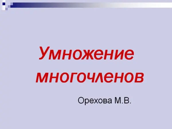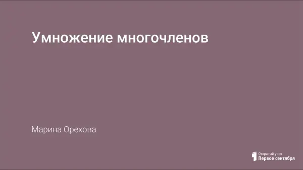Урок математики в 7-м классе является итоговым уроком темы «Многочлены» по УМК Макарычев Ю.Н. и др. под редакцией С.А. Теляковского. Цели урока: обобщить и систематизировать полученные знания по теме «Многочлены»; развивать логическое мышление; развивать устойчивое внимание на уроке путем решения задач; формировать умение сравнивать, находить ошибки при умножении многочлена на многочлен.