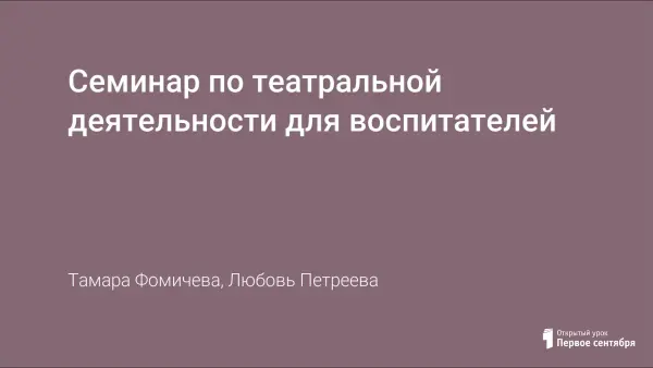Наш Центр развития ребенка использует разные формы работы, которые способствуют творческому объединению педагогов, воспитателей, детей и, конечно же, родителей. В нашем учреждении создана театральная студия «Кукляндия», в которой раскрывают свои творческие таланты воспитанники и педагоги. Мы предоставляем план-сценарий семинара-практикума, цель которого – обучить воспитателей использованию этюдов и упражнений как приемов создания выразительных образов героев детьми.
