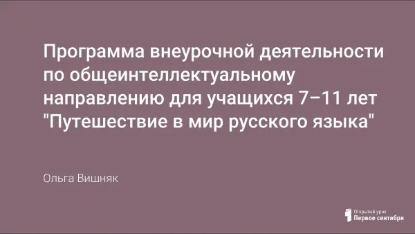 Программа внеурочной деятельности «Путешествие в мир русского языка» расширяет предметную область «Филология» за счет введения дополнительных сведений о словарном богатстве русского языка, упражнений на развитие логического мышления, разнообразного занимательного материала. Упражнения и задания активизируют учеников в конкурсах, викторинах, олимпиадах, исследовательской и проектной деятельности.