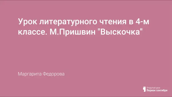 Цель урока: познакомить учащихся с рассказом М.Пришвина «Выскочка», создать условия для формирования умений анализировать содержание произведения, учить определять главную мысль произведения, развивать внимание к авторскому слову, расширить знания о творчестве М.Пришвина.