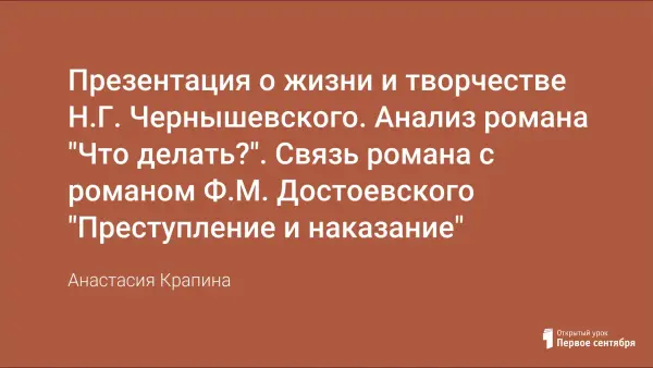 Презентация о жизни и творчестве Н.Г. Чернышевского. В работе описаны биография автора, основные тезисы диссертации «Эстетические отношения искусства к действительности». Жизнь выше искусства – главная мысль. Цель искусства — воспроизведение жизни, ее объяснение, «приговор о явлениях ее», оценка Чернышевским творчества Л.Н. Толстого, связь романов Чернышевского и Достоевского.