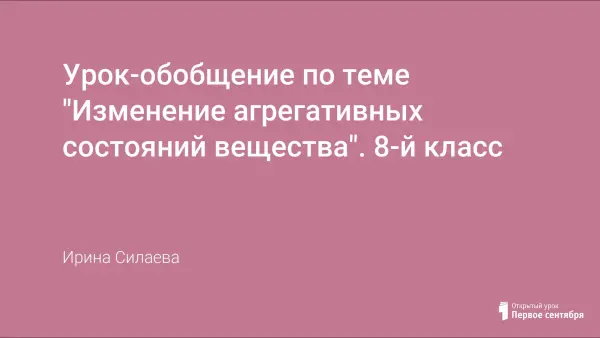 На уроке систематизируются и закрепляются знания учащихся по теме «Изменение агрегатных состояний вещества»; учащиеся формируют навыки расчета количества теплоты при изменении агрегатного состояния вещества; урок способствует развитию коммуникативных способностей и практических навыков при работе с физическим оборудованием.