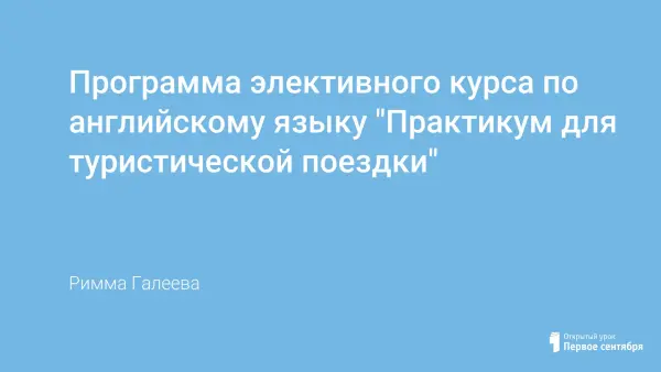 В статье описаны основные принципы и образовательные области элективного курса, который был составлен для учащихся 9-го класса и апробирован в средней общеобразовательной школе № 78 г. Омска. Актуальность программы в растущем значении практического владения английским языком. Цель курса: научить школьников ориентироваться в коммуникативных ситуациях во время пребывания в туристической поездке за границей. Промежуточный и итоговый контроль позволяют отслеживать эффективность реализации программы.