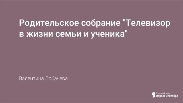 На собрании обращается внимание родителей на достоинства и недостатки общения ребенка с телевизором. Определяется наименование и количество передач для просмотра детьми.