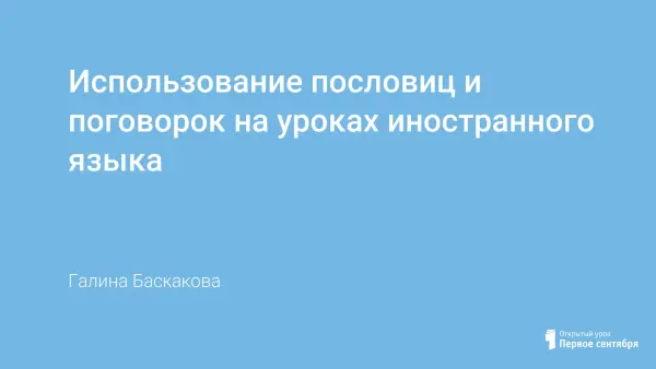 Использование пословиц и поговорок на уроках иностранного языка способствует лучшему овладению предметом, расширяя знания о языке и особенностях его функционирования. Знание английских пословиц и поговорок обогащает словарный запас учащихся, помогает им усвоить образный строй языка, развивает память. Приобщение к культуре страны изучаемого языка через элементы фольклора дает учащимся ощущение сопричастности к другому народу.
