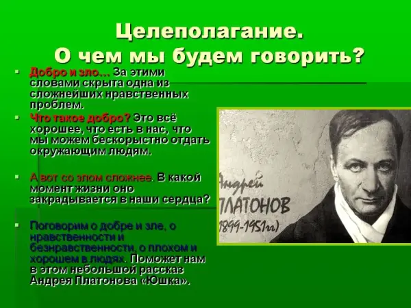 Урок литературы. Тема: "Рассказ А.Платонова "Юшка""