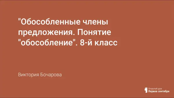 Цель урока русского языка: дать понятие "обособление" как смысловое и интонационное выделение; раскрыть роль обособленных членов в предложении; формировать умение находить обособленные члены предложения и пунктуационно выделять их; развивать мышление, речь, творческие способности учащихся.