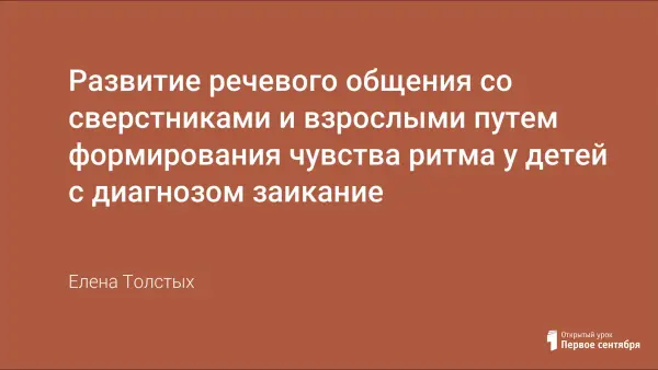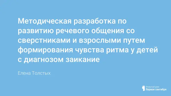 Развитие речевого общения со сверстниками и взрослыми путем формирования чувства ритма у детей с диагнозом заикание