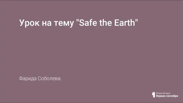 Урок посвящен вопросам охраны окружающей среды, предназначен для учащихся 9-х классов школ с углубленным изучением английского языка и направлен на активизацию речевых и мыслительных способностей учащихся. Урок позволяет создать положительную мотивацию к изучению английского языка, повторить и закрепить изученный материал.