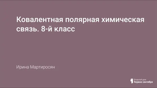 Комбинированный урок для учащихся 8-го класса, посвященный изучению механизма образования ковалентной полярной химической связи. Задачи урока: научиться составлять электронные формулы молекул веществ с ковалентной полярной связью; ввести понятие электроотрицательности и, на основе этого, объяснить природу ковалентной полярной связи; закрепить знания о распределении электронов в атоме; формировать умения написания электронных формул веществ и определения вида ковалентной связи.