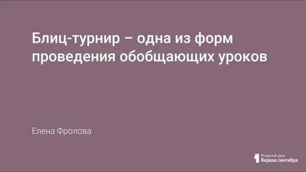 Блиц-турнир – одна из форм проведения обобщающих уроков