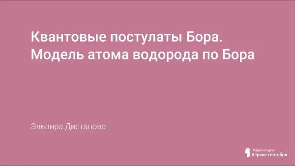 В разработке урока раскрыты причины несостоятельности ядерной модели атома, сформулированы постулаты Бора, приведено объяснение происхождения линейчатого спектра излучения и поглощения атома водорода, освещены трудности теории Бора, приведены вопросы для закрепления изученного на уроке материала.