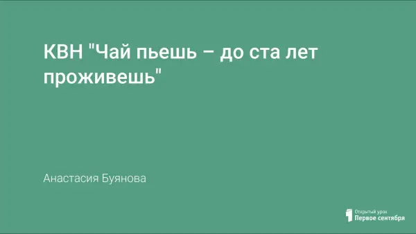 КВН «Чай пьешь – до ста лет живешь» представляет собой мероприятие, которое знакомит детей с происхождением чая. Расширяются знания детей о традициях русского гостеприимства и чаепития, умение правильно сервировать стол. Дети узнают о русских пословицах, связанных с чаем.