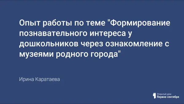 В статье автор делится опытом работы по формированию познавательного интереса у дошкольников через ознакомление с музеями родного города.