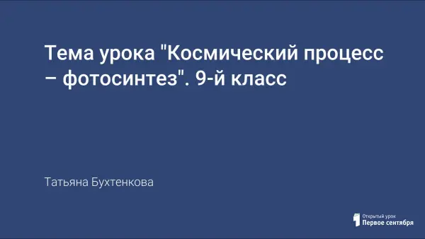 Тема урока "Космический процесс – фотосинтез". 9-й класс