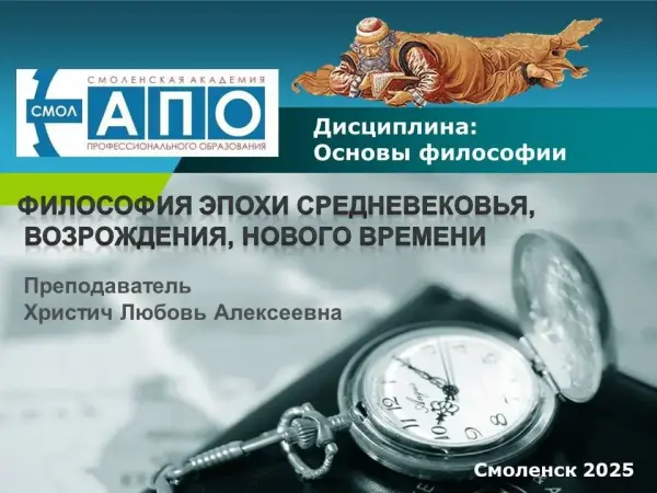 Обзорная лекция: Философия Срендневековья, Возрождения, Нового времени