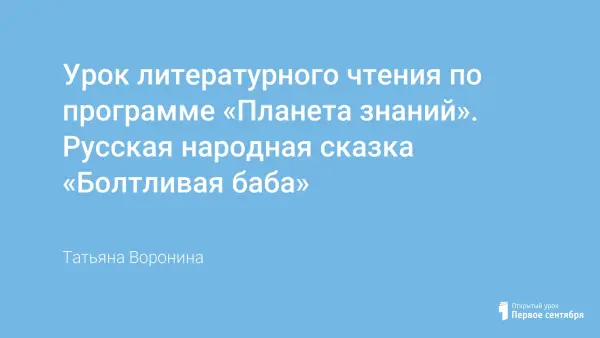 Представлен урок литературного чтения по теме "Русская народная сказка «Болтливая баба»".