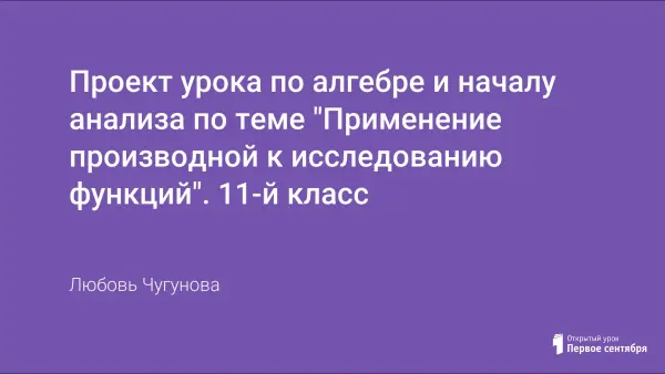 Урок является материалом для подготовки к ЕГЭ. Тип урока: систематизация и обобщение знаний и умений. Деятельность учащихся предполагает работу по алгоритму и ориентирована на самостоятельность. Урок проходит в атмосфере сотрудничества в позиции «учитель–ученик». Содержит основные типовые задания по теме «Производная и её применение» из КИМов ЕГЭ.