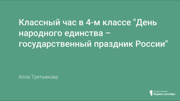 Урок призван познакомить школьников с Днем народного единства (4 ноября), рассказать школьникам о его духовном значении с целью формирования у них гражданственности и патриотизма; развивать мышление, речь, словарный запас школьника.