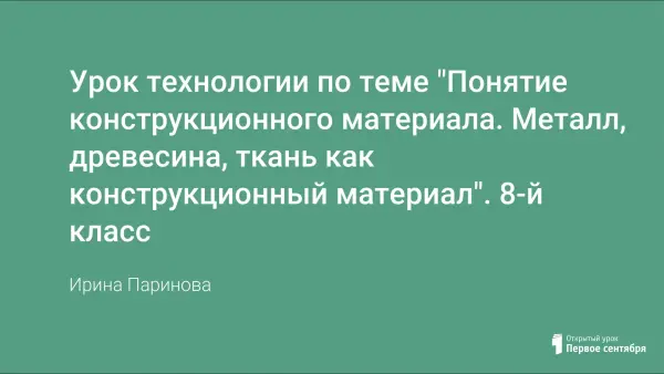 Материаловедение ‒ прикладная наука, изучающая строение и свойства материалов. Занятие дает целостное понятие, что такое конструкционный материал, направлено на восприятие информации по видам конструкционных материалов, как развивались эти материалы в истории человечества. Учащиеся должны понять, что только на основе глубоких и всесторонних знаний в области материалов можно разработать современную технологию, изготавливать изделия высокого качества.