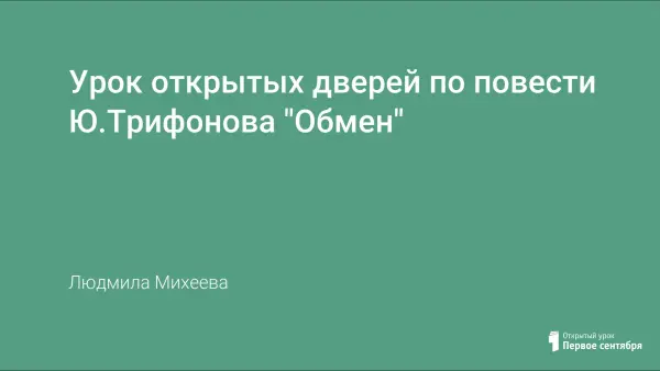 Быт со всеми его мелочами выявляет в человеке подчас не самые красивые стороны. Как остаться человеком и не растерять человеческое? Ответ на эти вопросы дает урок-размышление по повести Ю.Трифонова «Обмен».