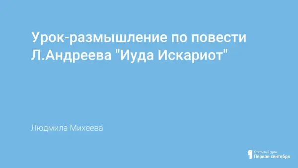 В статье представлен конспект первого урока по повести Л.Андреева «Иуда Искариот». Отличительной особенностью занятия является глубокая исследовательская работа по тексту с опорой на художественную антропологию, которая позволяет развивать навыки осмысления, интерпретации и разноаспектного изучения образов-персонажей.