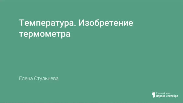 Содержание теоретического материала соответствует программе обучения физике в 10-м классе. Цель урока: сформировать понятие о температуре; охарактеризовать термометр, принцип действия и отличительные особенности. Урок сопровождается компьютерной презентацией при подаче нового материала.