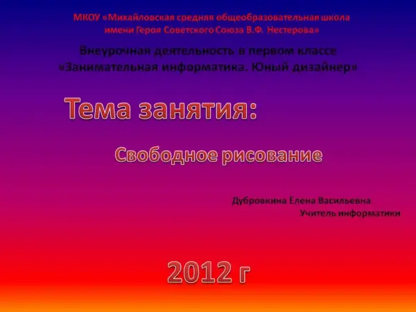 Цель: научить рисовать героев, большие сюжетные картинки с инструментами свободного рисования. Закрепляются навыки графики с мышью.