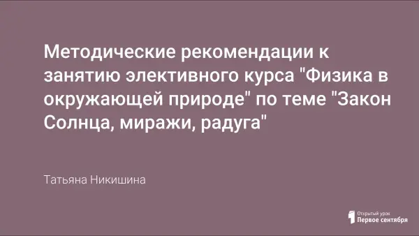 Данная статья - это методические рекомендации к проведению занятия элективного курса "Физика в окружающей природе" для учащихся 9-го класса по теме "Оптические явления в природе" (радуга, миражи, закат Солнца).