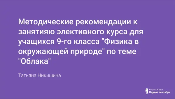 Методические рекомендации к проведению занятия авторского элективного курса "Физика в окружающей природе" для учащихся 9-го класса по теме "Облака". Занятие проводится в форме устного журнала.