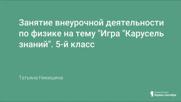 Занятие по курсу внеурочной деятельности «Занимательная физика» для учащихся 5-го класса проводится в форме игры «Карусель знаний» с учетом требований ФГОС. Ученики получат возможность повторить, закрепить знания по теме «Физические приборы. Измерение физических величин».