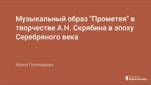 На уроке учащиеся знакомятся с творчеством русского композитора А.Н. Скрябина, с передовыми идеями искусства Серебряного века, а также рассматривают основные темы образа симфонической поэмы «Прометей».