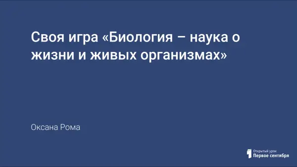 Представлена презентация к Своей игре по теме «Биология – наука о жизни и живых организмах».