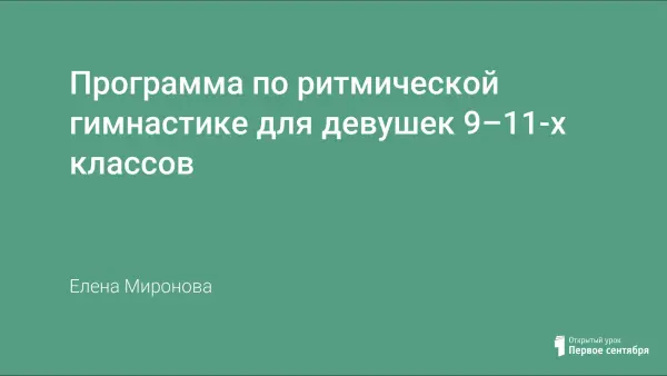В работе представлен примерный комплекс упражнений ритмической гимнастики для начинающих, учебно-воспитательная программа по ритмической гимнастике для младшей, средней и старшей группы девушек. К работе прилагаются фотографии, иллюстрирующие упражнения.