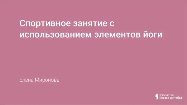 Здоровый физически и психически, полный энергии и сил педагог «заражает» положительным эмоциональным настроем, активной жизненной позицией своих учеников и их родителей. И если учитель рядом с учеником занимается физической культурой, это здорово! Некоторые говорят, что нельзя заниматься рядом с учащимися, это не педагогично. Я с этим не согласна! В конспекте урока я показала несколько упражнений из йоги, которые мы выполняем на занятиях.