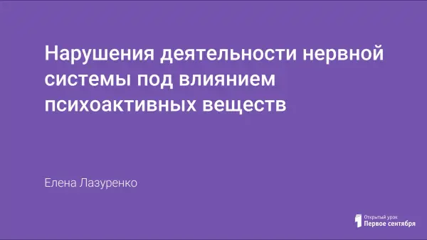 Занятие преследует цель углубить и расширить знания учащихся по проблеме влияния психоактивных веществ на организм человека. Большая часть занятия посвящена рассмотрению вопроса механизма воздействия наркотиков на нервную систему. Содержание лекции учителя подкрепляются слайдами презентации.