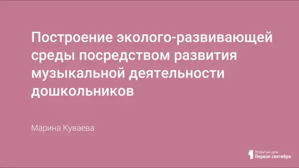 Воспитание экологической культуры – одно из важнейших направлений всестороннего развития личности ребёнка. Чтобы знакомство с экологической культурой было увлекательным и познавательным, широко используется музыкальная деятельность. Тема экологии должна всегда проходить рядом с детьми в повседневной жизни, в любых видах музыкальной деятельности. Нужно с ранних лет пробуждать и воспитывать в них чувство любви к природе, ко всему живому.