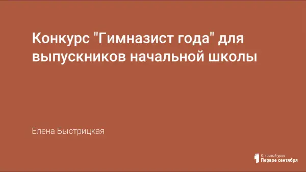 Конкурс «Гимназист года» проводится с выпускниками начальной школы и включает в себя 3 тура. В разработке предлагается "Положение о конкурсе" и сценарий проведения всех туров конкурса.