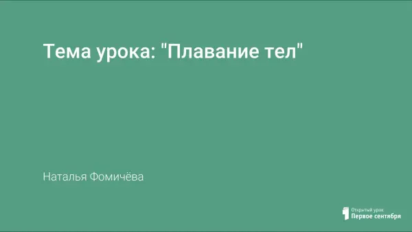 Цель урока – выяснить условия плавания тел в зависимости от плотности тела и плотности жидкости. Расширяются знания учащихся о плавании тел.