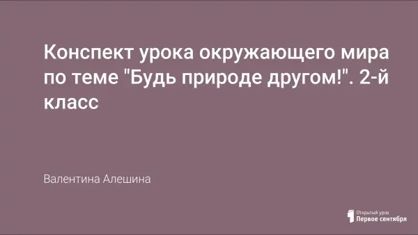 Урок окружающего мира по программе «Школа России» проводится во 2 классе 2 четверти. На уроке дети знакомятся с правилами поведения в природе. Задумываются над вопросом, как помочь природе. Рассматривают иллюстрации животных и растений, занесённых в «Красную книгу Кузбасса». Стихи поэтов родного края украсят урок. Используются стихи собственного сочинения (начало урока, физминутка, конец урока). Материал урока можно использовать на внеклассном мероприятии.