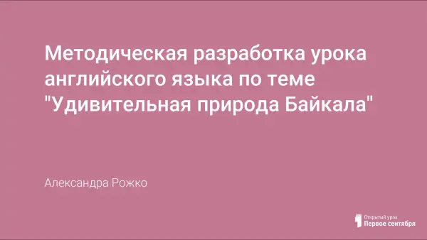 В связи с ростом технологического прогресса, развитием туризма, увеличением разного рода отходов, тема экологии Байкала не перестает быть актуальна. Цель урока: представить информацию об уникальности озера Байкал на английском языке; обеспечить ее освоение и первичную отработку в ряде упражнений; побудить учащихся задуматься о сохранении и защите озера.