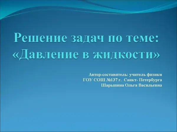 Цели урока: формировать умение использовать полученные знания для описания явлений в жидкостях; развивать общеучебные умения наблюдать, оформлять решения задач, аргументировать выводы.